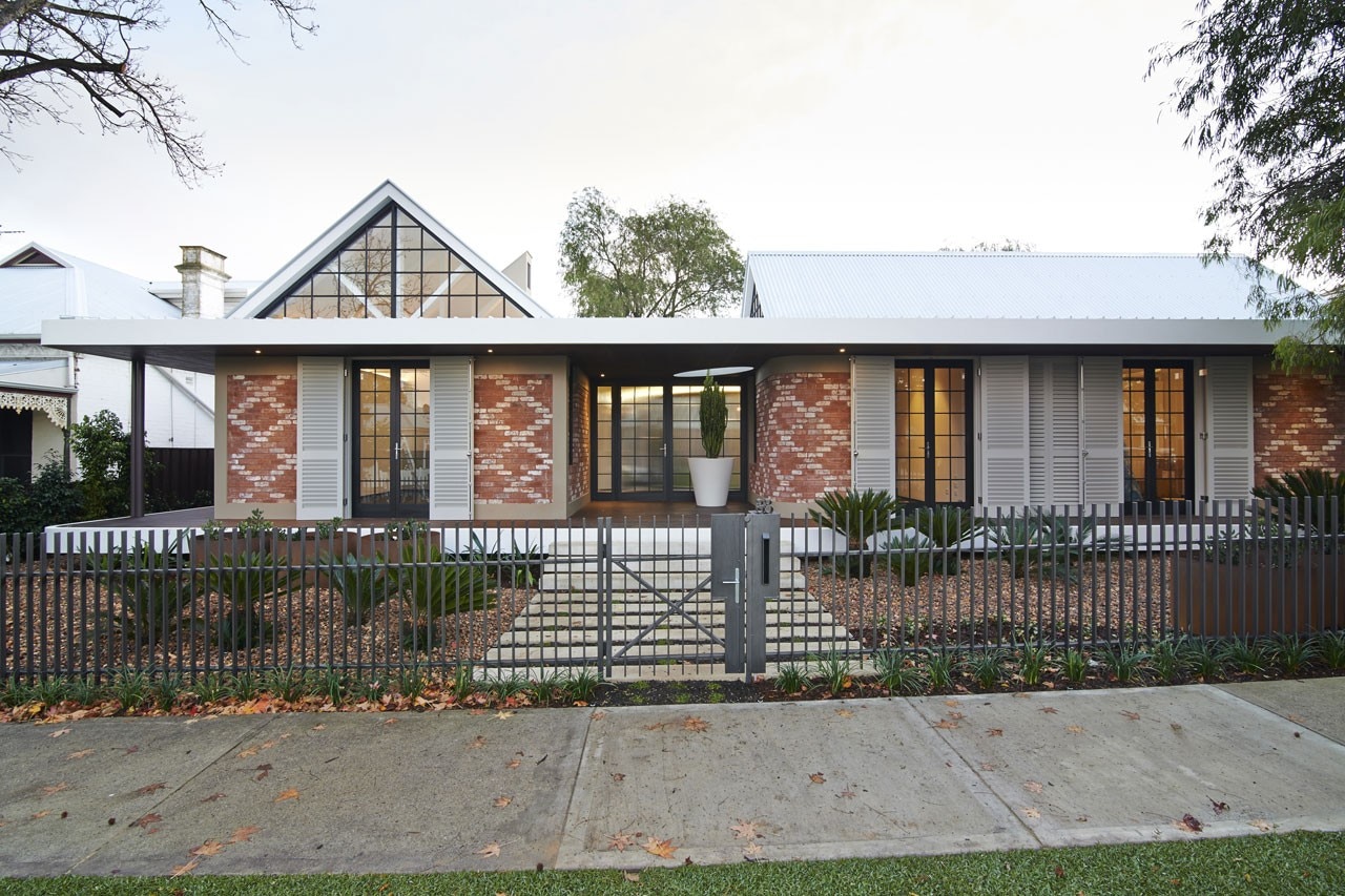 Externally the oval is bordered by another veranda with its Jarrah timber deck set at seat height, which provides the family with a theatrical open space to play and entertain that is visible and easily accessible from wherever they are in the house. It also showcases some of the more contemporary elements of the building in details such as the Luigi Rosselli Architects designed profiled aluminium wall cladding to the veranda and vertical sun shade louvres. Internally the courtyard lends its form to the surrounding buildings in the curves of the connecting corridors and partition glass panelling.