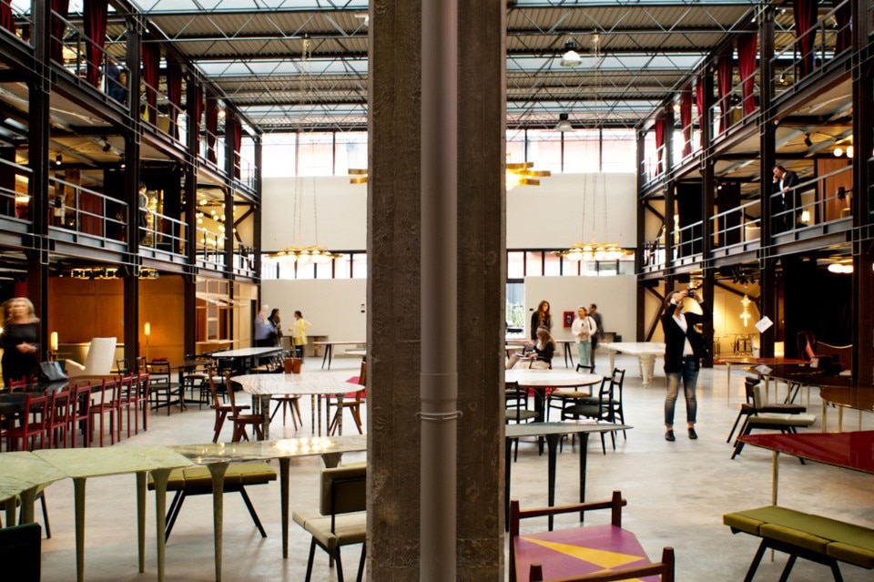 The Nilufar Depot was inaugurated by a large private event, a sit-down dinner served in the spacious central atrium set up with designer-made tables and chairs, all different from one another.