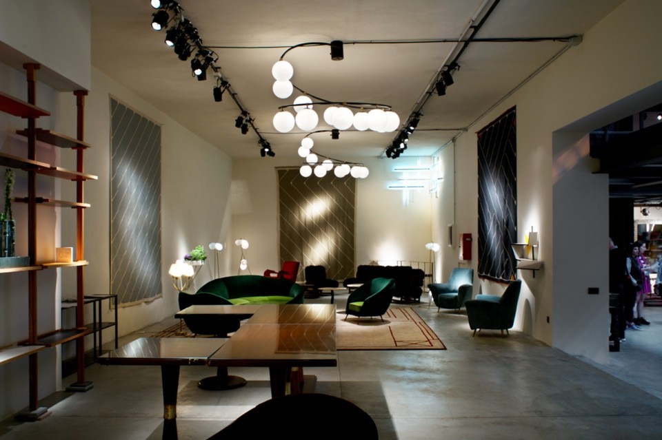 Now the warehouse has become one of the largest showrooms of the city, transformed by Massimiliano Locatelli (CLS Architetti), who designed it with in mind the Teatro alla Scala, Milan’s famous opera house. An awe-inspiring and solid, yet harmonious metal structure welcomes the eclectic pieces of the Nilufar aesthetic.