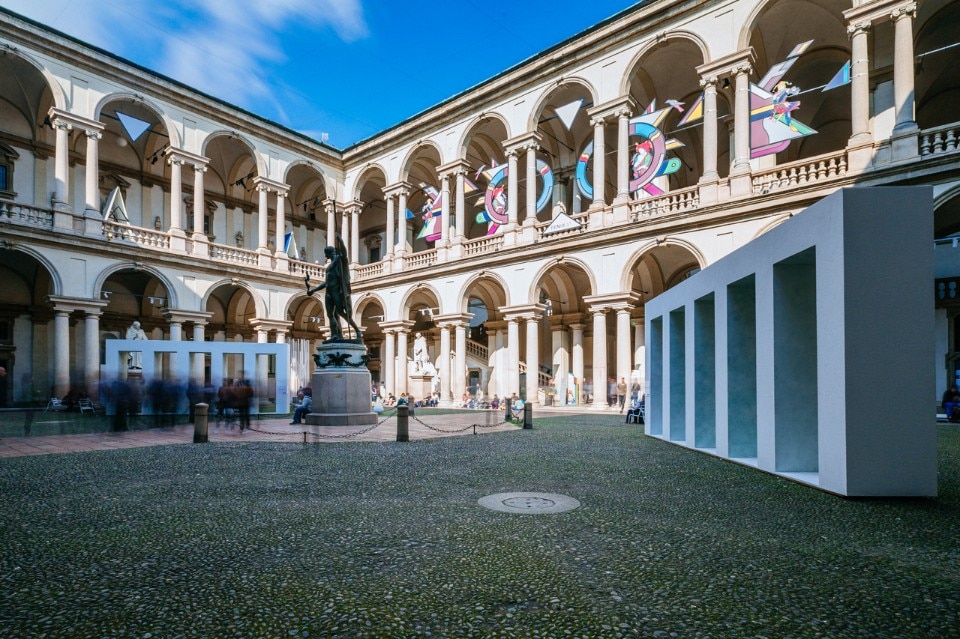 “White Architecture” nel cortile d’onore della Pinacoteca di Brera è composta da due installazioni di Giulio Cappellini, mentre il colonnato ospita installazioni temporanee di alcuni tra i più noti architetti e designer internazionali. Troviamo una scala di Patricia Urquiola per ‘spiare’ i passanti, strutture geometriche di Daniel Libeskind, abbracci marmorei di Stefano Boeri. Ancora un’immersione bianca con David Chipperfield, le forme parametriche di Zaha Hadid Design e un tuffo materico nell’installazione sinuosa di Aires Mateus. “White Luxury” (nella Sala della Passione sempre alla Pinacoteca di Brera) propone il connubio bianco e lusso, in collaborazione con Marco Piva e nomi dal mondo della moda.