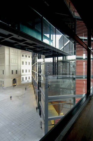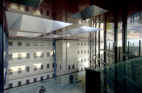 The new Reina Sofía is a grand building but not a great work. A B-product of Nouvel’s factory, its lightweight aesthetic combines all the futuristic features that have made the French architect so popular: the industrial atmosphere of steel-and-glass constructions, a theatrical taste for bright and dark interiors, the dissolution of volume by sharp edges and reflective surfaces.