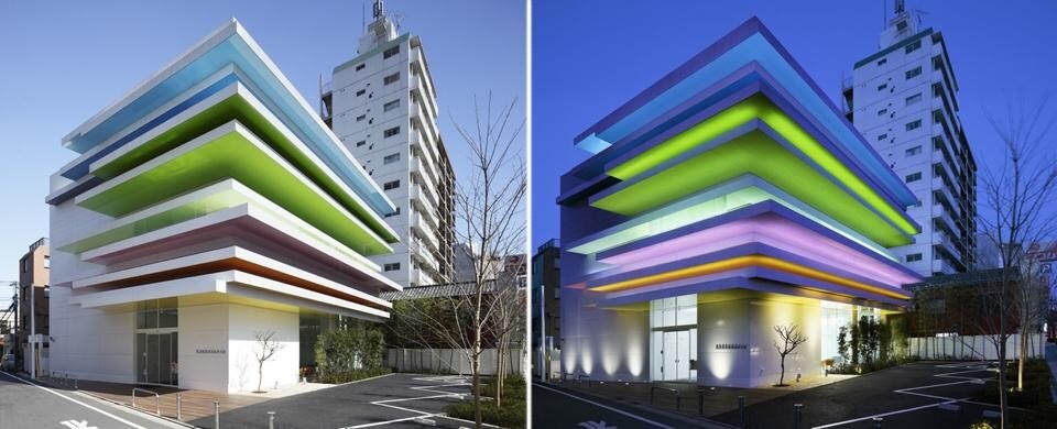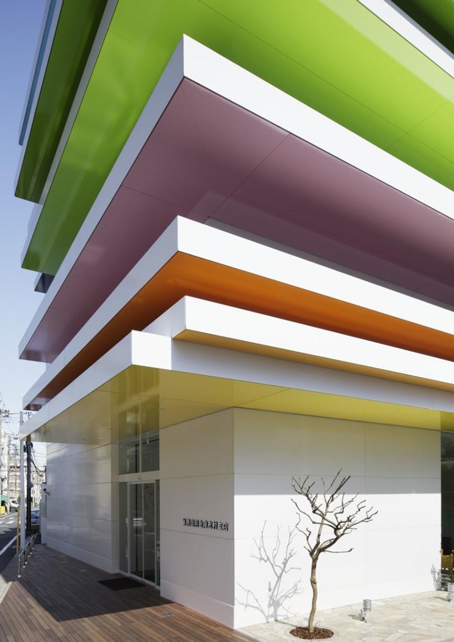 Sugamo Shinkin Bank is a banking group that promotes architecture as a means of providing a necessary service to their customers; so much so that their motto is, "We are happy when we make you happy." After having already commissioned two projects, the director of Sugamo Shinkin Bank asked Moureaux to design the Shimura branch for which he requested a colourful, cheerful building that would make people forget the seriousness of being in a bank.