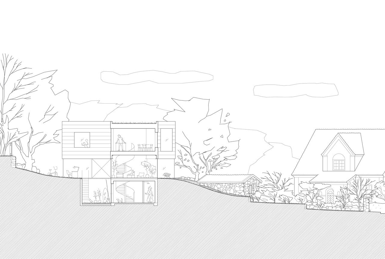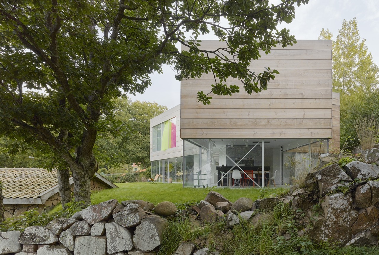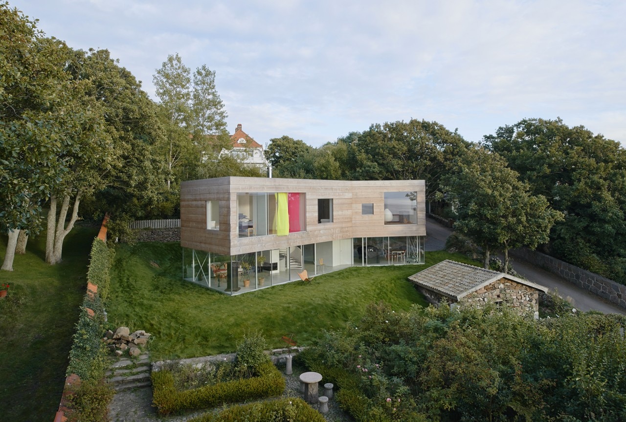 The building expresses both contrast and tenderness in relation to site and context. Its volume has been kept low, without any plinth or pitched roof. Facing Öresund, the terraced site has an ocean view, but the building questions the convention to turn all rooms towards that same view – the site has many qualities all around, with stone and brick walls, vegetation, and an old ice cellar semi-submerged into a hill.