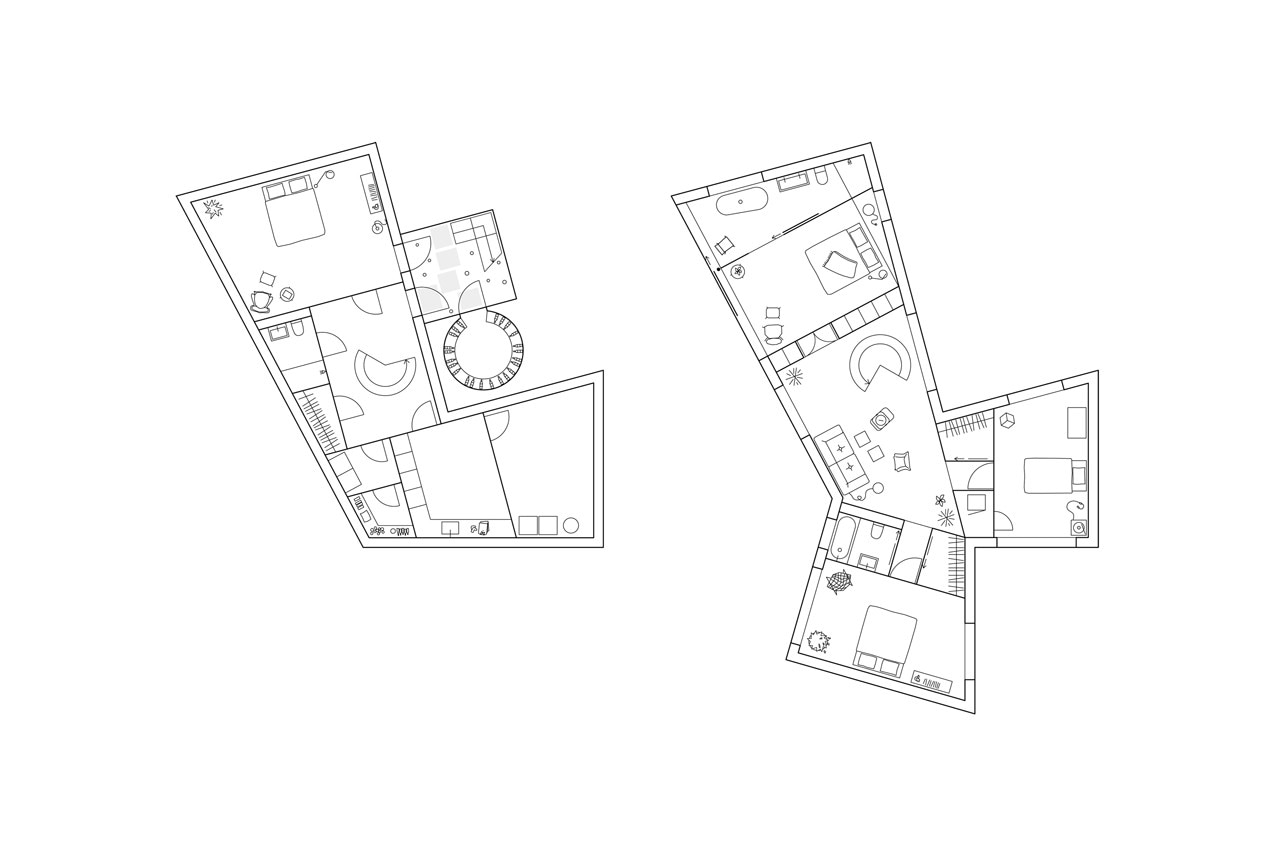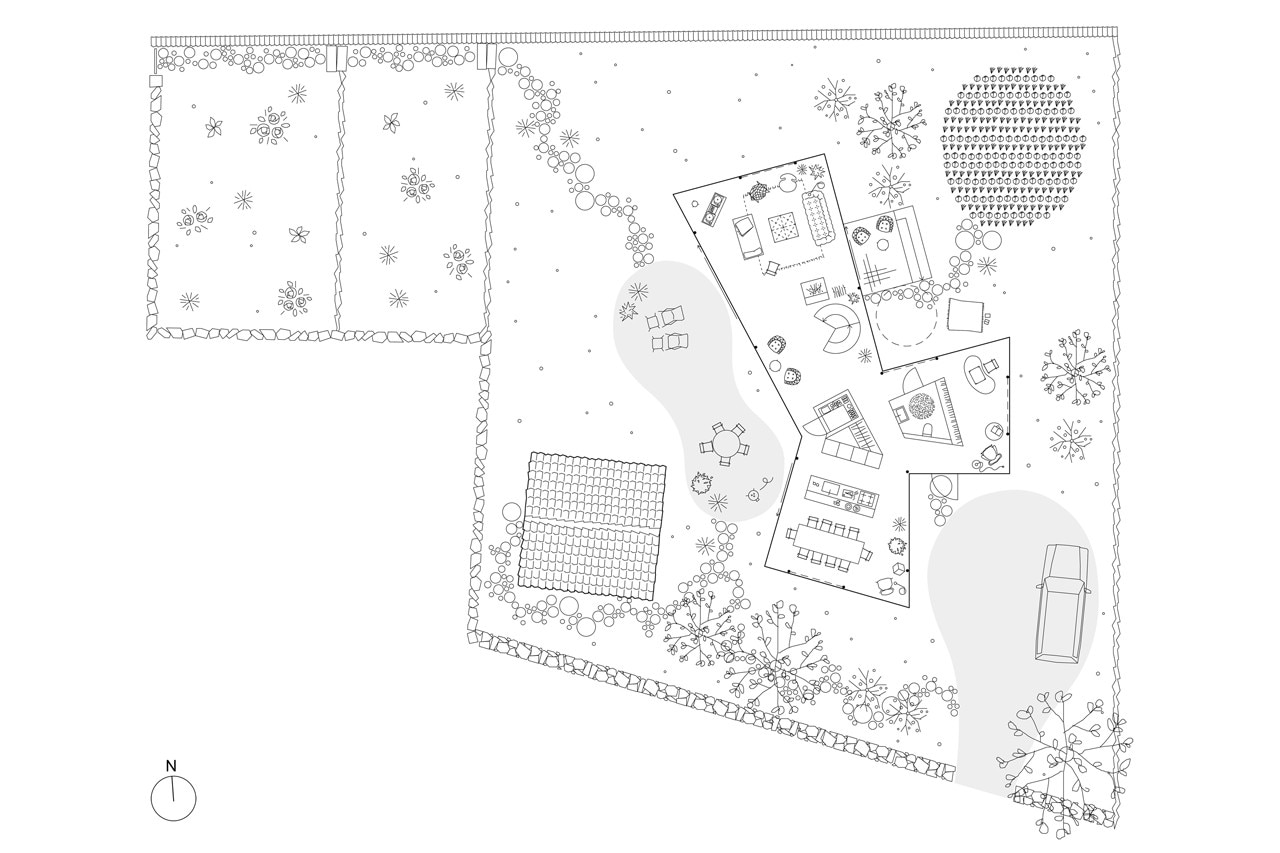 The building’s shape divides the site into different exterior spaces and provides a softly divided sequence to the interior. Not immediately perceptible, the graphic form of the plan results in a building volume that rather reads as a fragmentized whole – from some angles striking, from other angles neat.