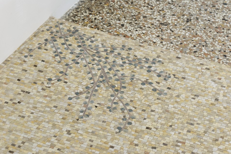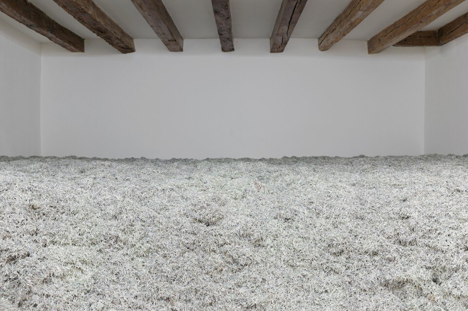 In Venice, it was hung up and unfurled once again in a single action for The Parting Discourse at the Teatro Goldoni, a stone’s throw from the Pavilion. Folded up again, it lies on the undulating floor of Palazzo Malipiero, revealing a portion of printed sea and leaving the door open to the reading of another story.