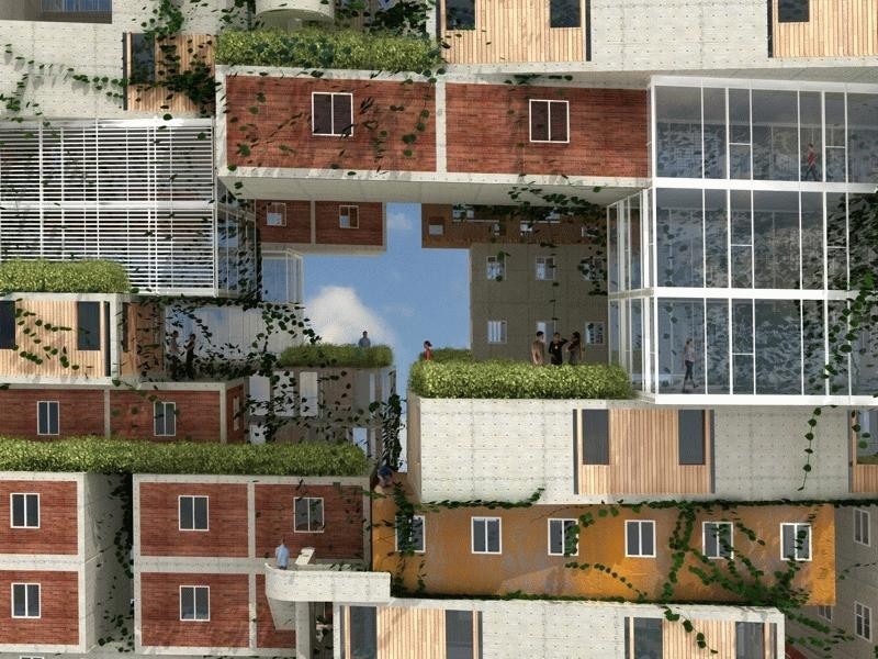 "Historically, the skyscraper was a unitary, homogeneous form that reflected the generic, flexible office space it contained," Beckmann says. "The Vertical Neighborhood is more organic and more flexible--an assemblage of disparate architectural languages. It reflects an emerging reality for tall buildings as collections of domestic elements: dwellings, neighborhoods, streets."
