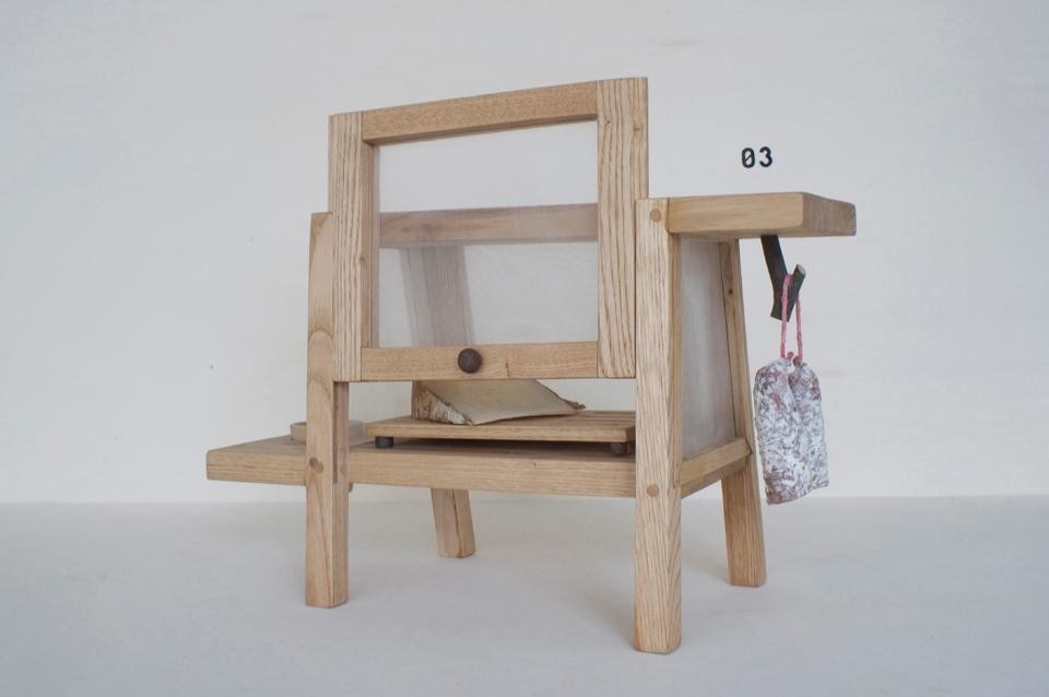 Each pair had about 2 months to meet up, think, design and make the pieces, with only a dimension constraint of 60 x 60 x 60 cm The purpose of this project, initiated by Emilie Colin Garros, Philippine Lemaire and David des Moutis in summer 2010, is to promote a mode of creation based on the proximity and to reflect the possibility of innovation and creation in a framework where the discussion and the transmission of technical and practical knowledge are possible.