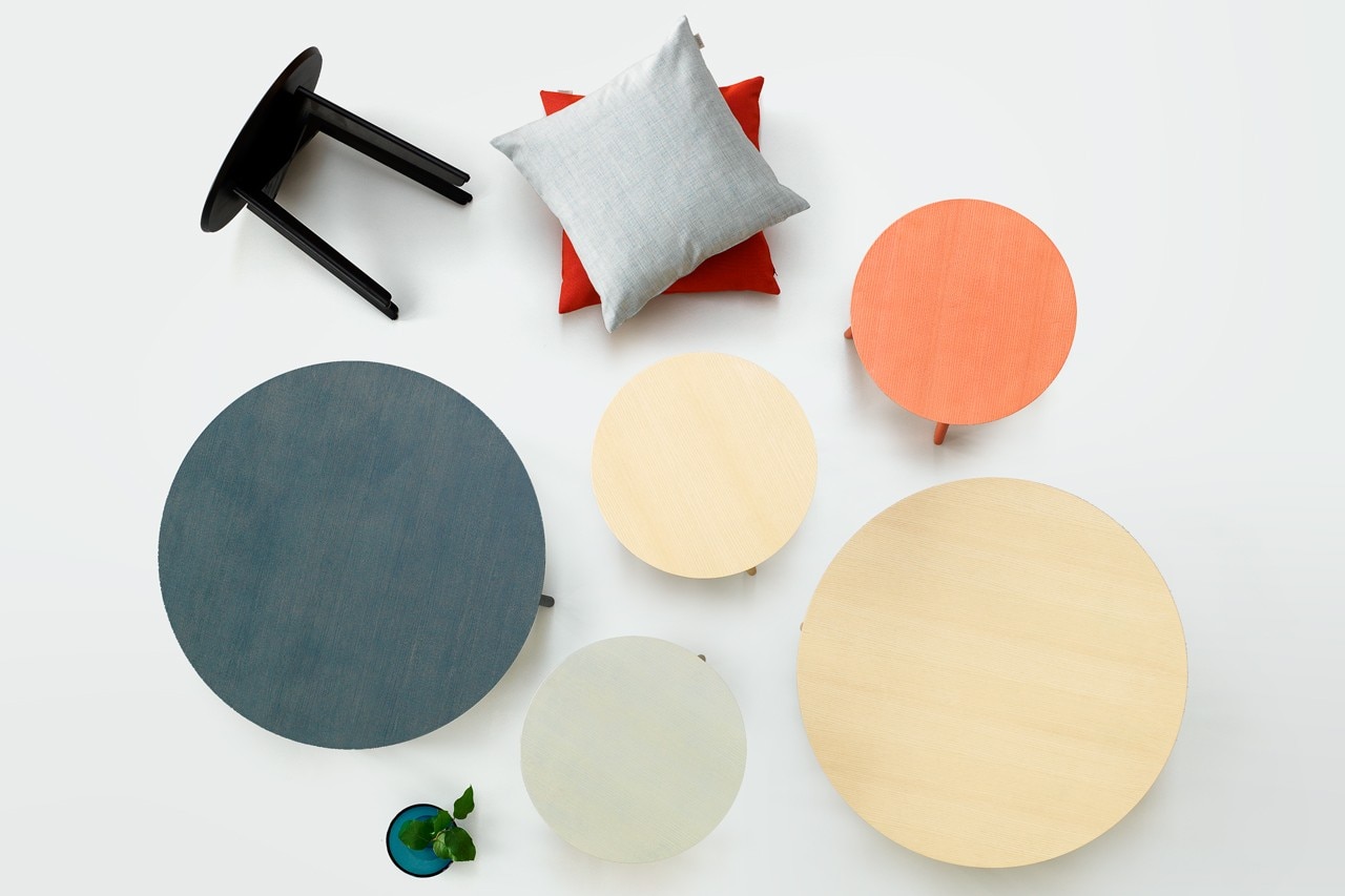 Area is a series of smaller tables that accompany Rise and Fogias other products. Consisting of two sizes and a rich, subtle color scheme, the tables can be combined together to fine compositions of round shapes overlapping each other.