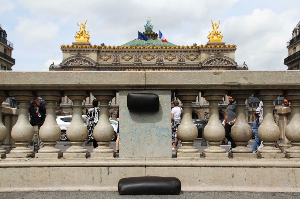 The sculptural interventions are inspired by spontaneous urban postures the artist identified in the streets when people stand still. These actions of leaning on architectural surfaces can be interpreted as “active ways to live the city and affirm our presence by appropriating portions of public spaces. It’s almost a form of protest, a social statement” explains the artist.