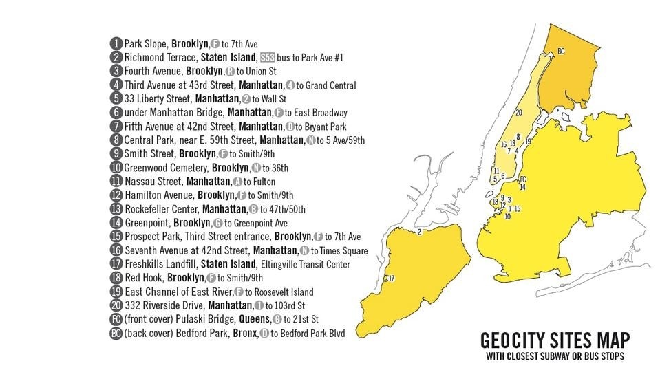 Geologic City: a Field Guide to the GeoArchitecture of New York by Smudge Studio takes you to 20 sites where you can sense the geologic pulse of New York City. With the field guide in hand, residents and visitors are able to interact with both unfamiliar and iconic New York architecture and infrastructure in unexpected ways: by sensing for themselves the forces and flows of geologic material that give form to the built environment of the City. The City's architecture and infrastructure depends upon extractions of geologic materials that took millennia to form. Yet, there is virtually no cultural awareness of this reality.
