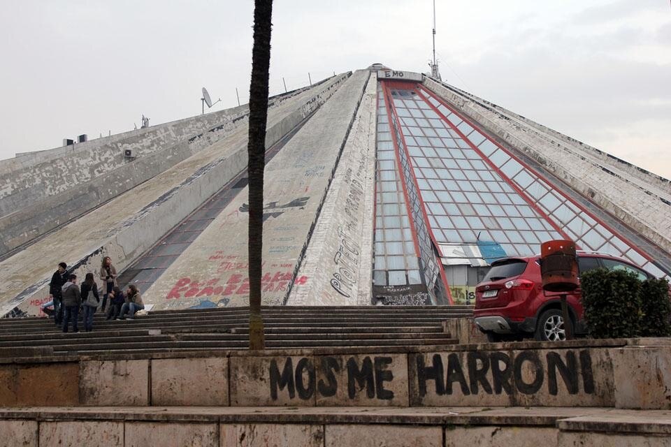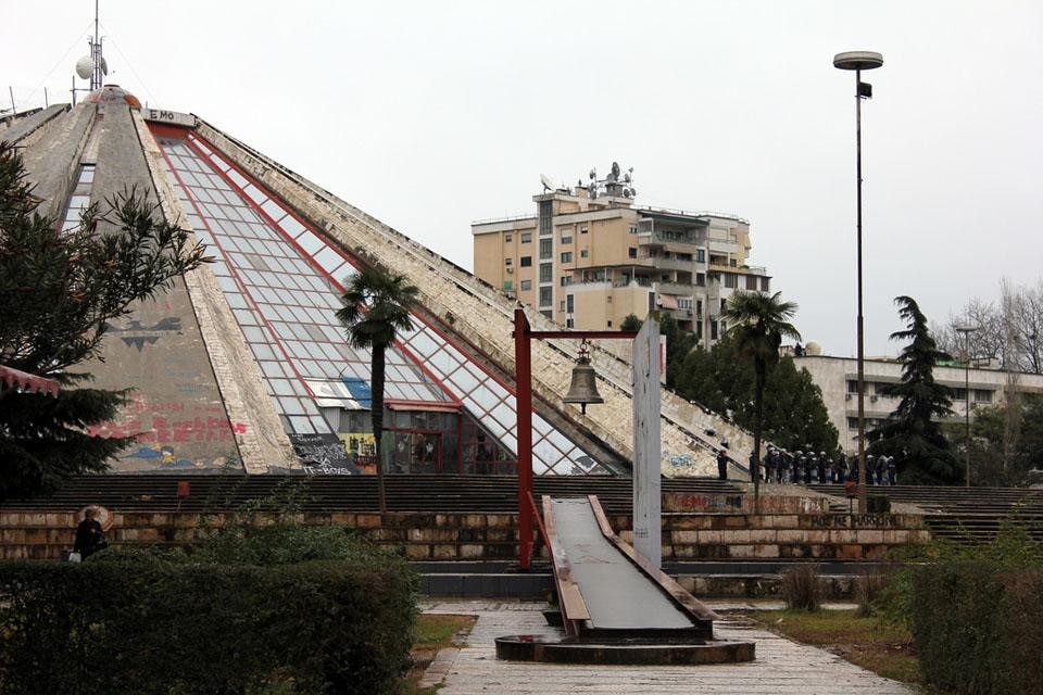 Dopo la caduta del regime comunista, il memoriale, grazie a una frivola ma pragmatica iconoclastia del popolo albanese, fu convertito in un centro culturale, incubatore e promotore di eventi e manifestazioni, all'interno del quale trovarono collocazione anche un locale notturno e gli studi televisivi di una nota emittente locale. Non solo: i ragazzini scoprirono che l'inclinazione delle pareti dell'edificio offriva loro la possibilità di arrampicarvisi e scivolare fino a terra, mentre giovani e studenti, che di Hoxha avevano solo potuto leggere o sentir parlare, fecero della piramide un luogo d'incontro e socializzazione. Riattualizzate le funzioni e il significato, la società contemporanea albanese dimostrò dunque di aver metabolizzato la propria storia, conscia della complessità dominatrice di questo processo, ma ancor più consapevole dell'impossibilità di costruire un futuro che non avesse passato.