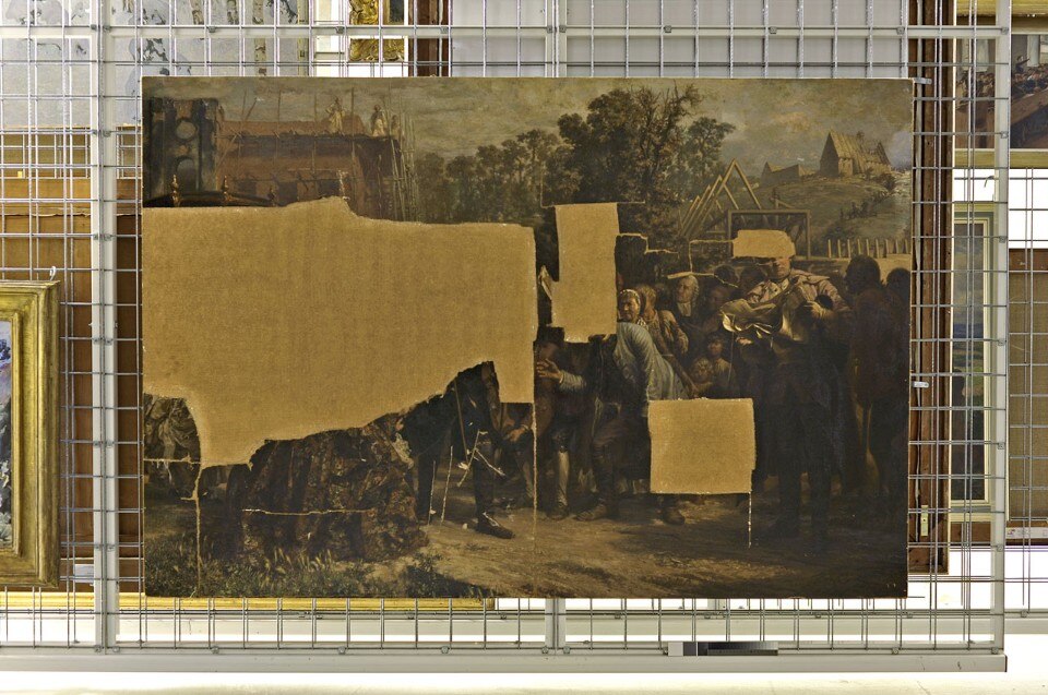 Nella prima sezione sono raccolte fotografie, dipinti e film in cui l’oggetto rubato o mancante diventa un corpo del reato o la scena del crimine. Ci sono opere che richiamano più direttamente l’immaginario criminale, come la denuncia incorniciata da Maurizio Cattelan – Senza titolo (1991) – a seguito di un furto di un’opera immateriale, o Stolen Rug (1969), un tappeto persiano rubato su richiesta di Richard Artschwager per la mostra “Art by Telephone” a Chicago. Inoltre sono presentati lavori che evocano l’assenza, risultato di un furto, come la tela di Adolph von Menzel Friedrichder Grosse auf Reisen (1854), mutilata per ricavarne ritratti di minori dimensioni. Altri lavori, invece, si basano su un processo di alterazione di opere d’arte preesistenti, come Richter-Modell (interconti) (1987), un quadro di Gerhard Richter trasformato in un tavolino da Martin Kippenberger e Unfolded Origami (2016) di Pierre Bismuth che realizza una nuova opera a partire da poster originali di Daniel Buren. Questi lavori approfondiscono la nozione del controllo dell’autore sulla propria opera.