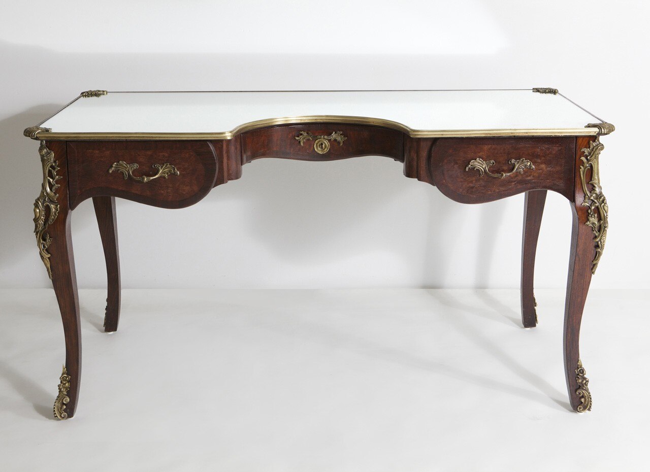 The desk wishes to offer the user a moment of reflection, a moment of thought at the one space where we make most of our important decisions in life. In order to fabricate the desk, Errazuriz found a broken down French Desk from circa 1880, which he then completely restored. He cut into the original desk with a semi circumference to allow the user to now fit inside the desk. The original top was replaced with a mirror.