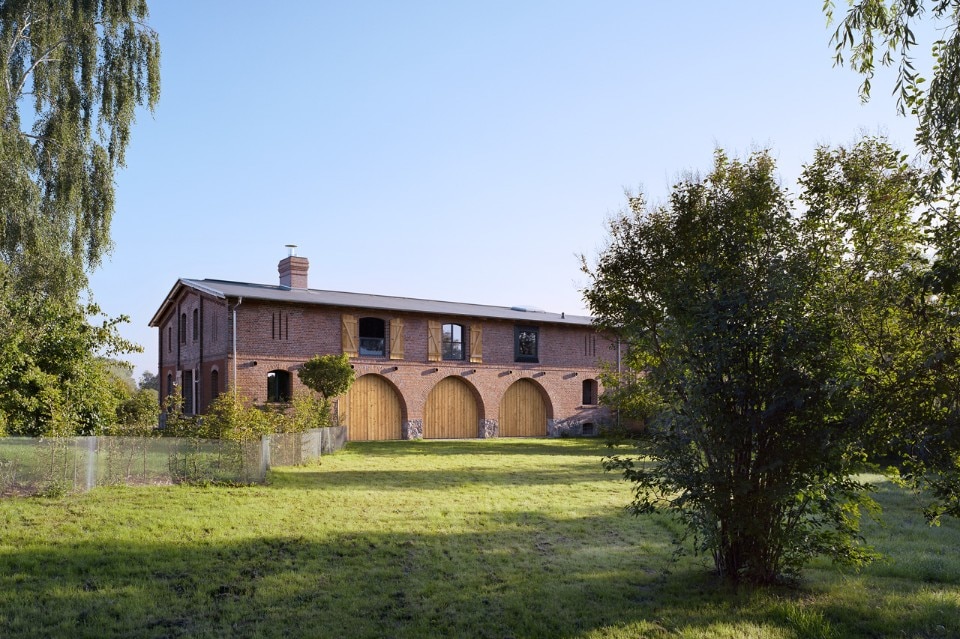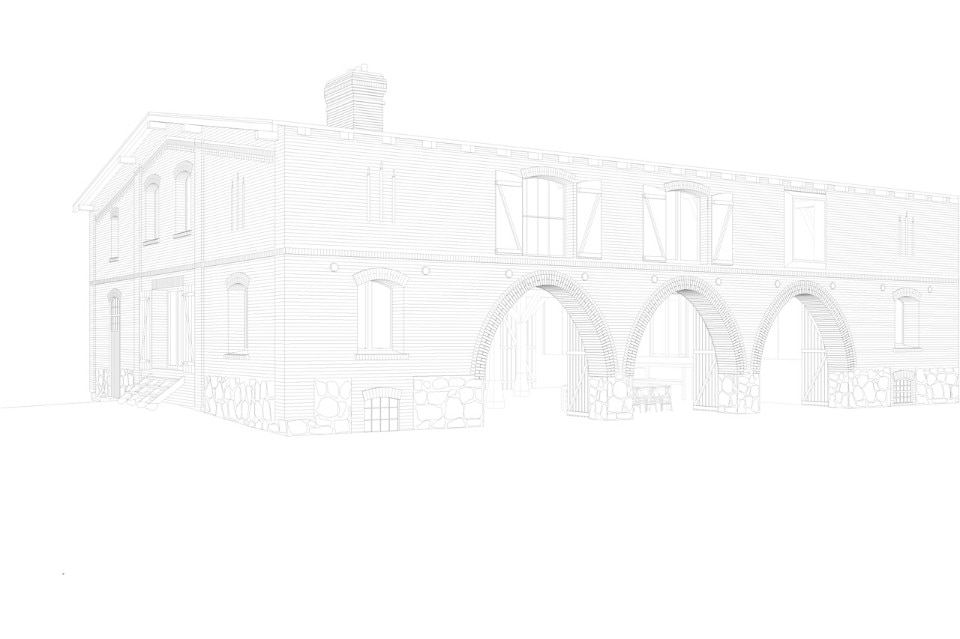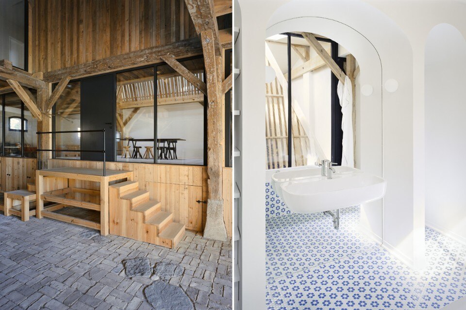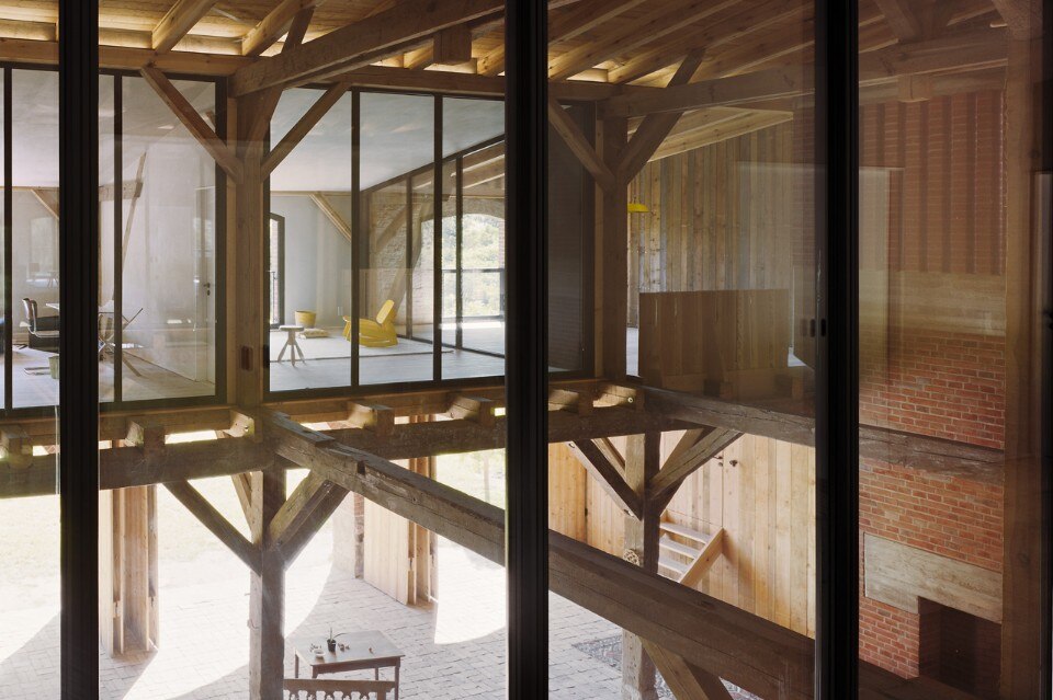 Questo vecchia stalla con fienile è un edificio estremamente stabile con spessi muri spessi di pietra, piccole finestre al piano di sopra e un grande cancello di legno sotto. La bellezza intrinseca delle travi in legno e la spaziosità del locale sono stati intaccati solo dalel operazioni di carotaggio. Il centro della casa è un soggiorno con camino a doppia altezz . Tre grandi nuove aperture ad arco, affacciate sul frutteto e sul paesaggio verde, possono essere chiuse da grandi elementi di legno.