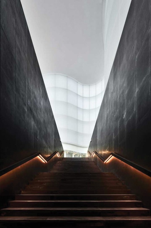 The main feature of the project by the famous architect David Chipperfield - the current director of Domus - is the contrast of shapes, materials, colours and lights between the halls and the large central square.