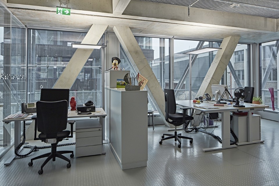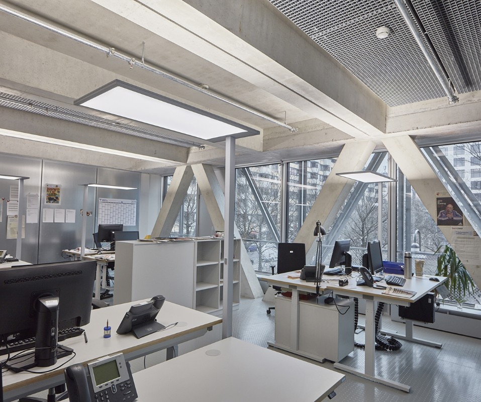 The SL720SL lamps by Performance iN Lighting follow the dynamic character of the taz Berlin newspaper's workspaces.