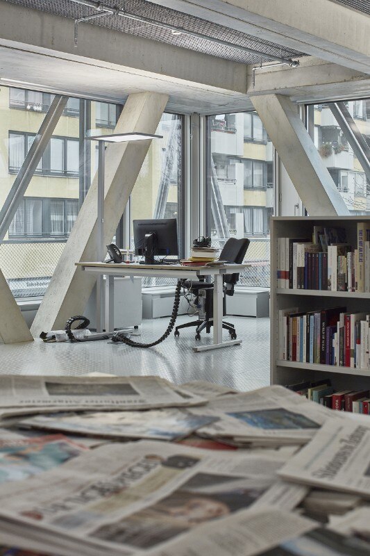 Openness, flexibility and transparency are the values that the German newspaper taz Berlin wants to convey through the architecture of its new headquarters in the very central Friedrichstrasse. The building, designed by Swiss studio E2A, is inspired by early 20th century Russian constructivist architecture, in particular the "Shabolovka" radio tower in Moscow.