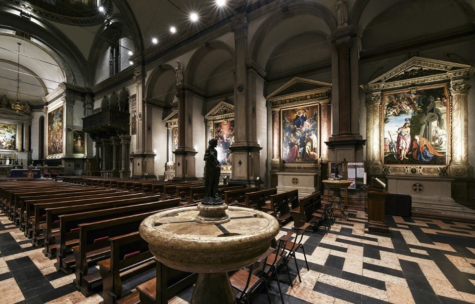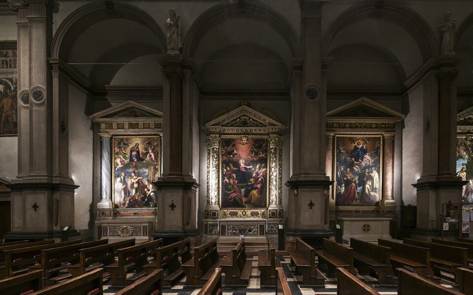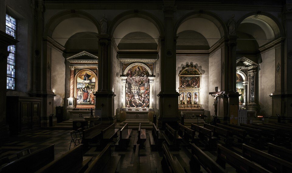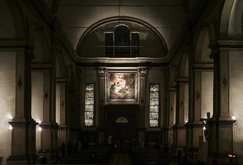 The new lighting project focuses on the painting of the Martyrdom of St. George, which forms the backdrop to the presbytery, becoming the focal point of a path that leads visitors to discover all the church's works.