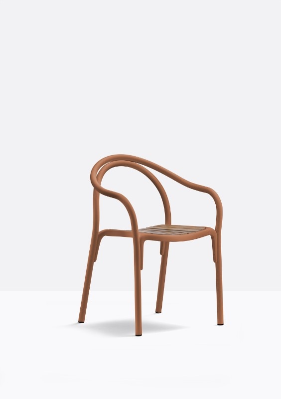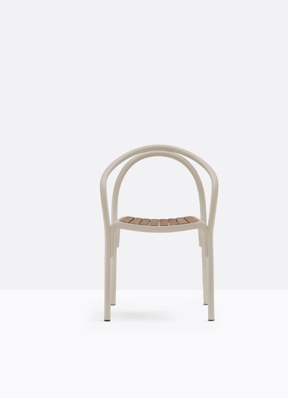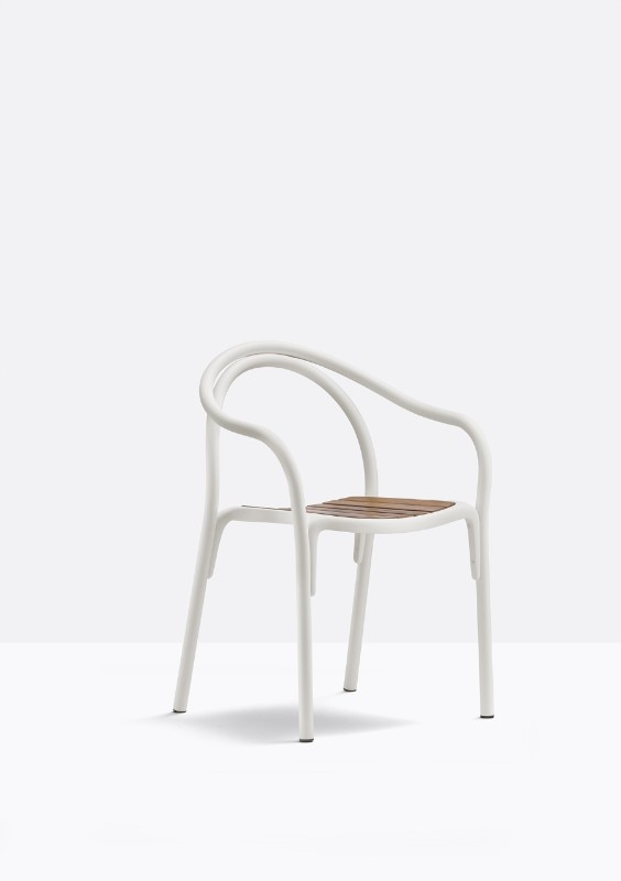 Quitllet also designed the Soul Outdoor armchair, using materials and technologies usually found in the nautical world. The curved aluminium tube structure embraces the seat in shaped teak slats, guaranteeing strength and lightness, without neglecting the aesthetic impact of the sinuous curves and the contrast between the materials.