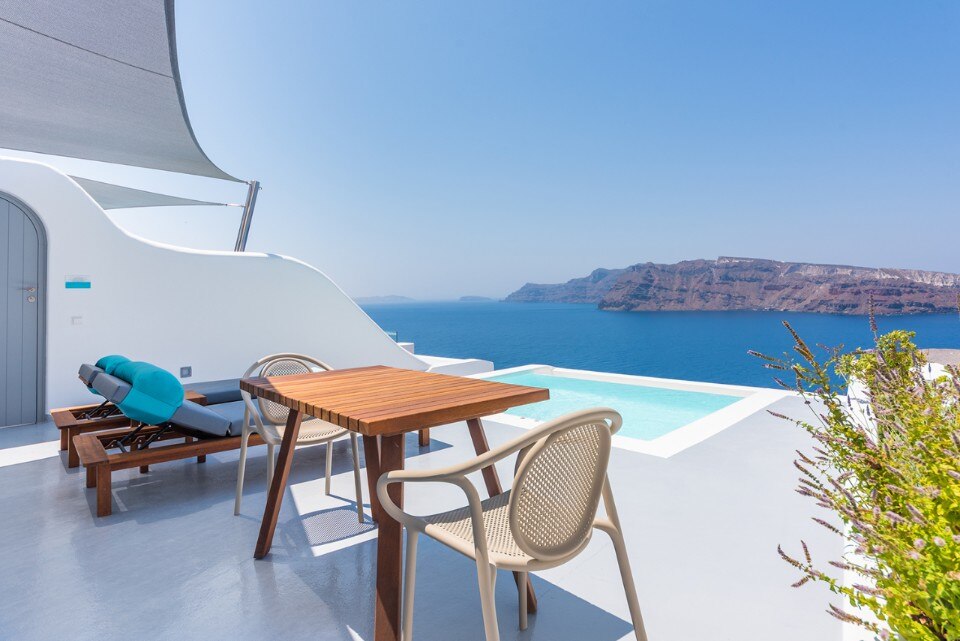 Cover image: Hotel Maregio Suites, Santorini, furnished with Remind armchairs, designed by Eugeni Quitllet for Pedrali