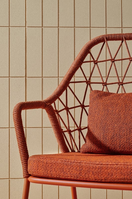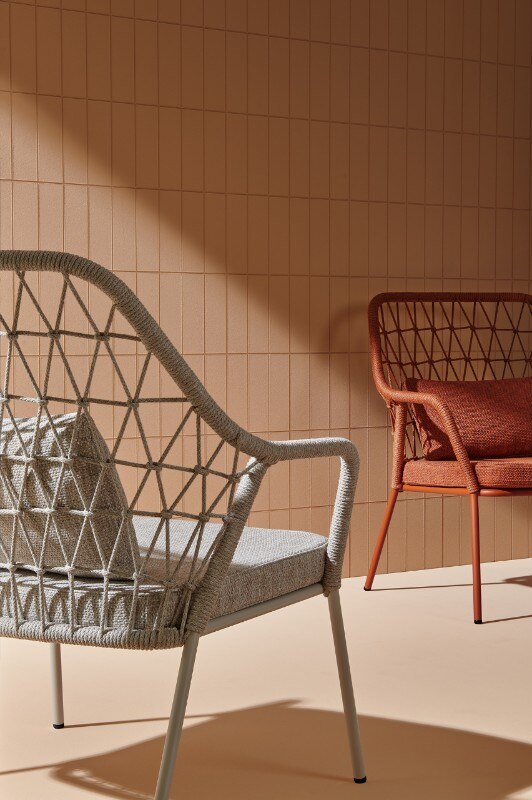 Among Pedrali's new proposals we find Panarea, a sophisticated collection consisting of an armchair and a lounge designed by CMP Design studio, inspired by the colours and unique atmosphere of the Sicilian island. The wide and generous seat features a high back and polypropylene cord. The colour palette is sophisticated and reminiscent of the Aeolian Islands: from the warm tones of sand and terracotta, to the blue of the sea and grey.