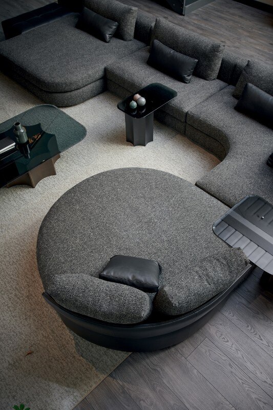 The Oasi modular sofa is part of the new collection for the living area, consisting of sideboard, chair, cabinet and table, all designed by Maurizio Manzoni. The collection is united by a particular distinguishing mark: an "S" which is visible in the structures or in some details of the various pieces of furniture.