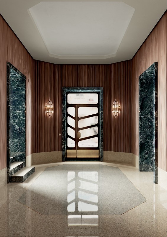 With the slabs of the Il Veneziano collection by Fiandre Architectural Surfaces it is possible to replicate the decorations of traditional floors but also to carry out volume processing and the creation of furnishings and special pieces. Thanks to its team of experts, Fiandre Architectural Surfaces allows the creation of customised solutions to meet every design requirement. The background colour, variety of grains and size of the format can all be tailored at the designer's discretion, so as to follow his or her own stylistic style with refinement.