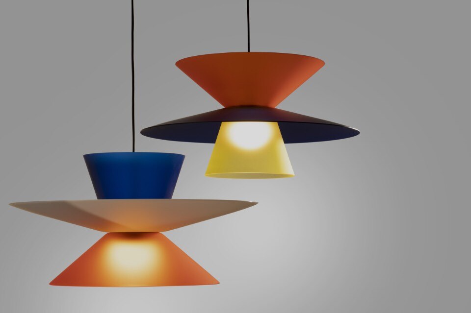 Peluffo&Partners designed a suspension lamp for Martinelli Luce, which is defined by the different formal and chromatic combinations of three conical-shaped diffusers.