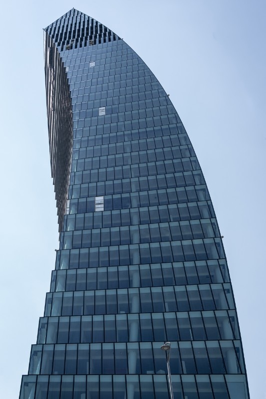The Curved, the Straight and the Crooked – or Hadid Tower, Isozaki Tower and Libeskind Tower – are the nicknames of the triad of new skyscrapers in the City Life district, a project that well represents Milan's innovative soul and its propensity to look upwards. Of the three buildings, the most recent, designed by Polish architect Daniel Libeskind, is undoubtedly the most challenging in terms of construction. Its characteristic curvature in elevation is made possible by a translation of the floors at each level with respect to the barycentre, a central core of reinforced concrete. The Libeskind Tower has an overall height of 175.5 metres (34 floors), and a total surface area of 33,500 square metres.