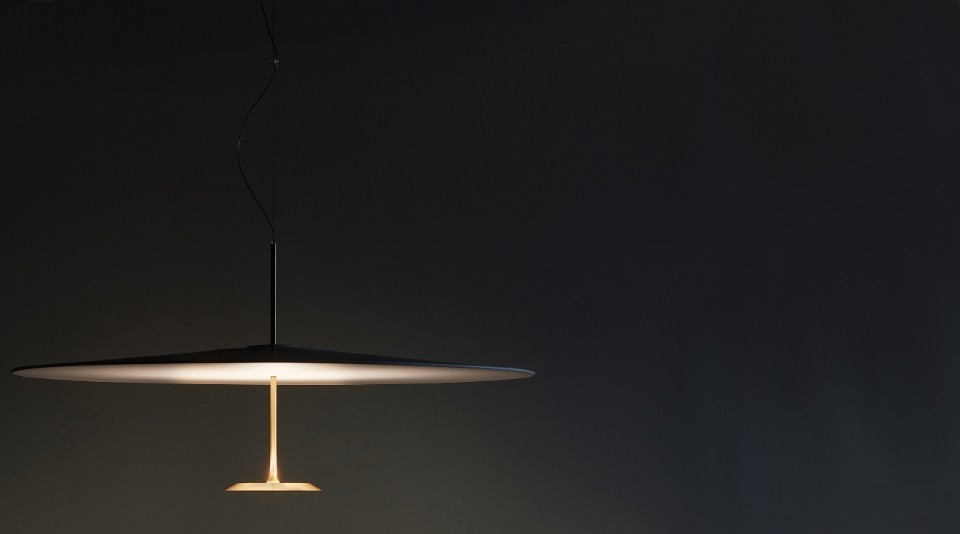 An elementary composition – two discs connected by a thin metal tube – conceals the complexity of the lighting technologies adopted.