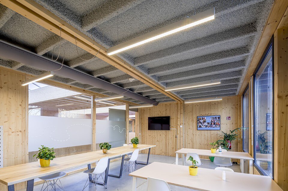 The systems are also integrated into the prefabricated system, improving the visual quality of the space and further reducing construction time. This also includes the lighting system, provided by Performance iN Lighting, who worked closely with all parties involved in the project to ensure the best quality in the final result.