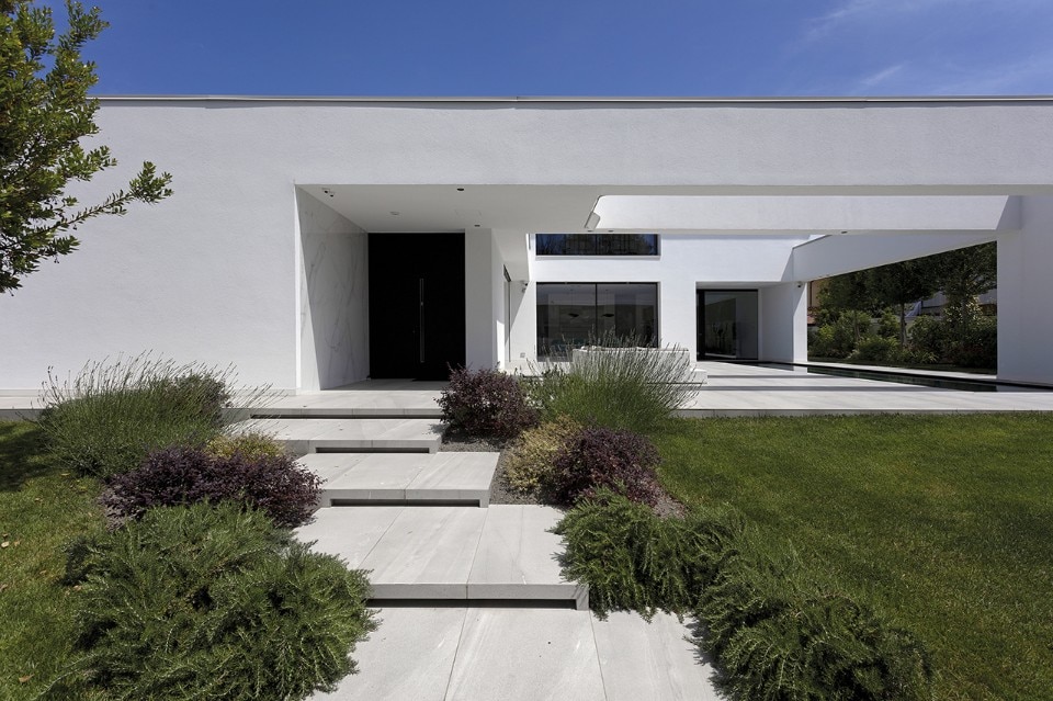 The architects designed an "introflexed" structure, that is, one that completely overlooks the internal patio and swimming pool with large windows. Also isolating the house from its neighbours is the design of the garden, which encloses Villa FZ as if in a casket.
