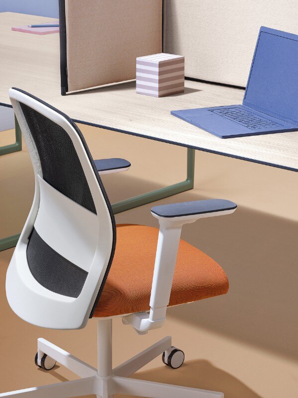 The first room recreates a multi-station office. The new Polar armchair designed by Jorge Pensi Design Studio takes centre stage, a task chair that ensures maximum customisation in terms of ergonomics with its simple and intuitive built-in mechanisms.