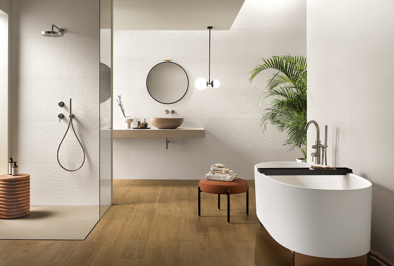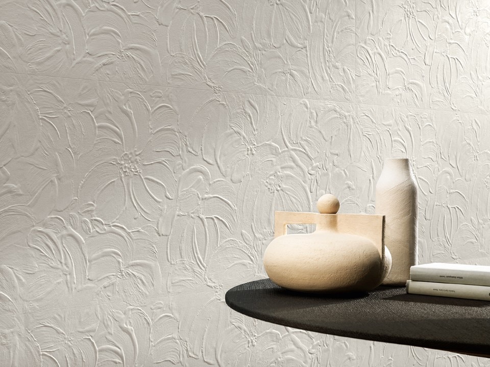 The 3D Wall Plaster collection of ceramic surfaces, produced by Atlas Concorde, is inspired by the craft techniques of working with plaster, which has been used since ancient times to sculpt statues, inlays and stuccoes and has become a fundamental element of art and architecture over the centuries.
