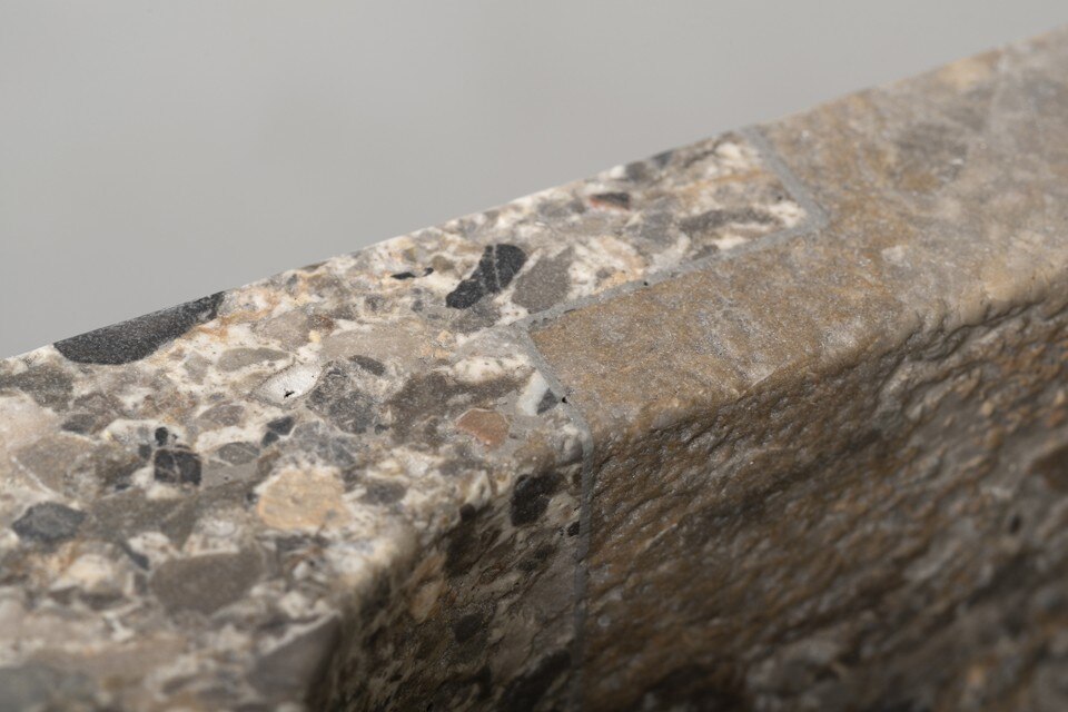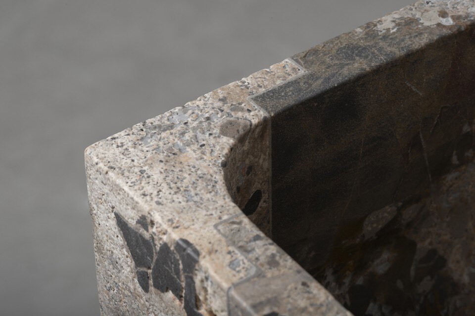 Joint detail of the square basin: the assembly of solid pieces allows the interior to be curved as if made from a block