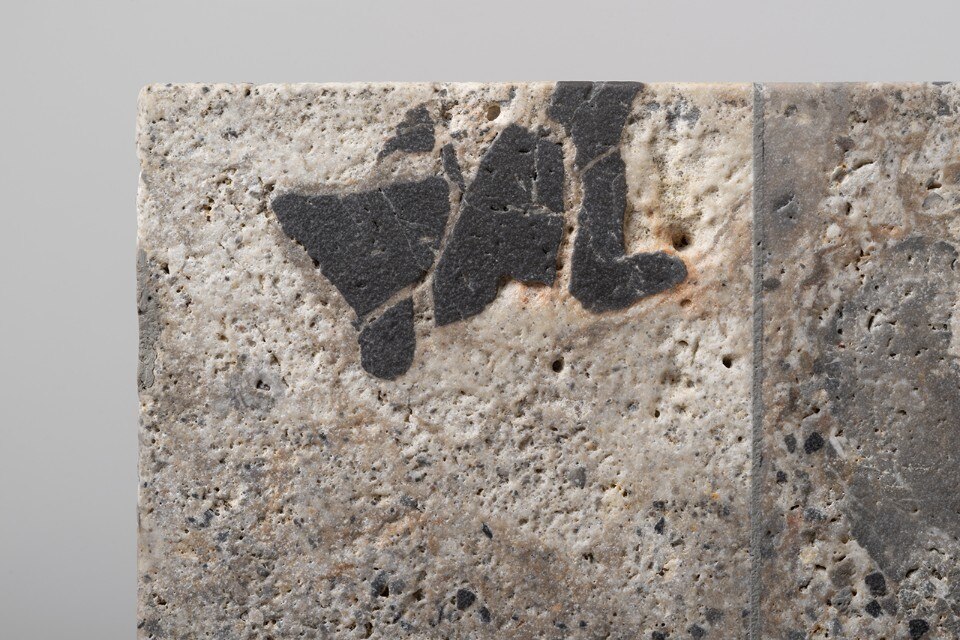 Joint detail of the square basin: the line of the joint drawn by the grout is both a construction detail and a distinctive feature of the basin