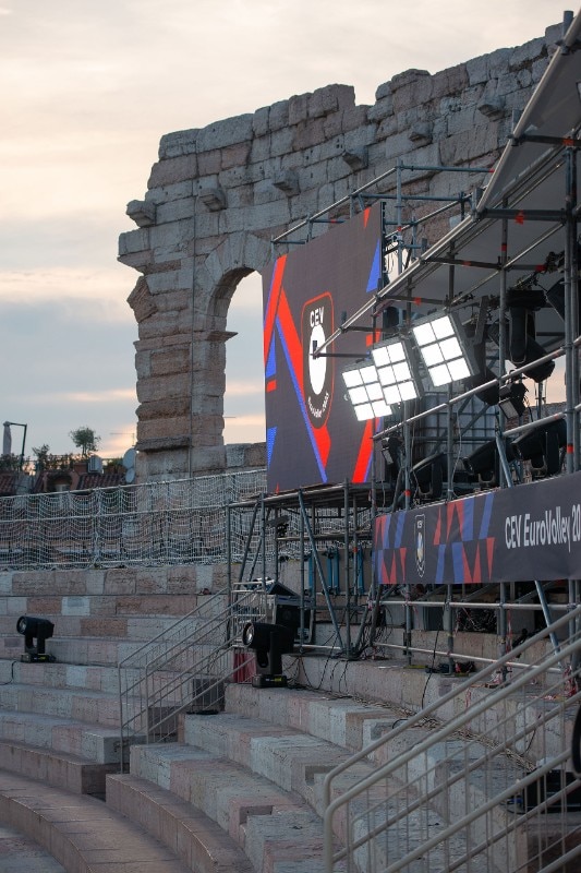 Behind this spectacular operation there has been very complex work, which has seen the collaboration of the Superintendence, the Italian Volleyball Federation, the City Council, and various professionals. For the lighting suitable for an event of this magnitude, the organisers relied on Performance iN Lighting's forty years of experience in providing light for sporting events of international calibre. A far from simple challenge given the lighting performance to be guaranteed and the uniqueness of the site.