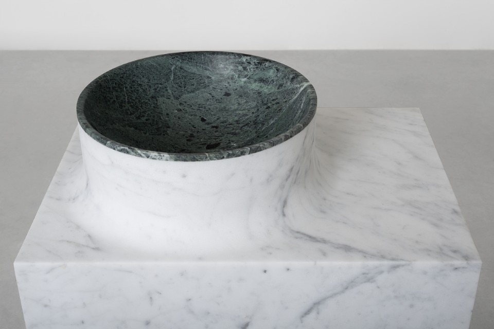 Vaselli presents a new version of the Lava pedestal washbasin, combining Alpi Green Marble and Bianco Carrara Patinato.