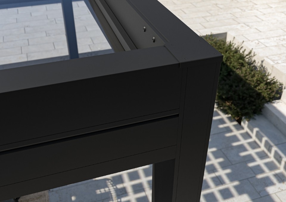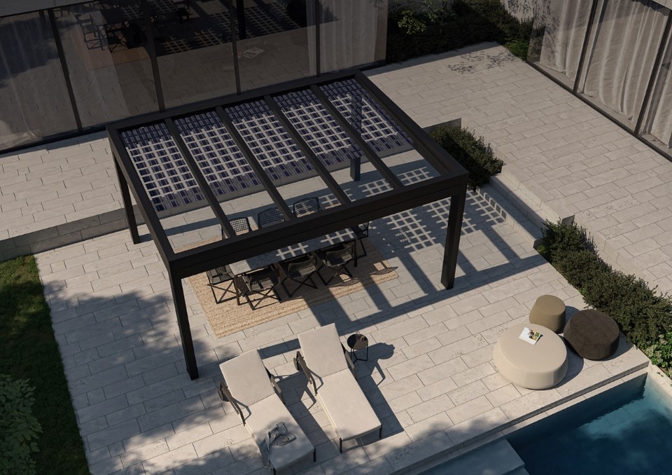 Sunlight presents a new development in the name of sustainability: the 2024 version of the collection can be integrated with a photovoltaic system on the roof. Sunlight will in fact have a photovoltaic cell system perfectly integrated with the laminated glass roof system. This solution brings significant advantages in terms of sustainable and renewable electricity production, without impacting on the design and overall aesthetics of the structure.