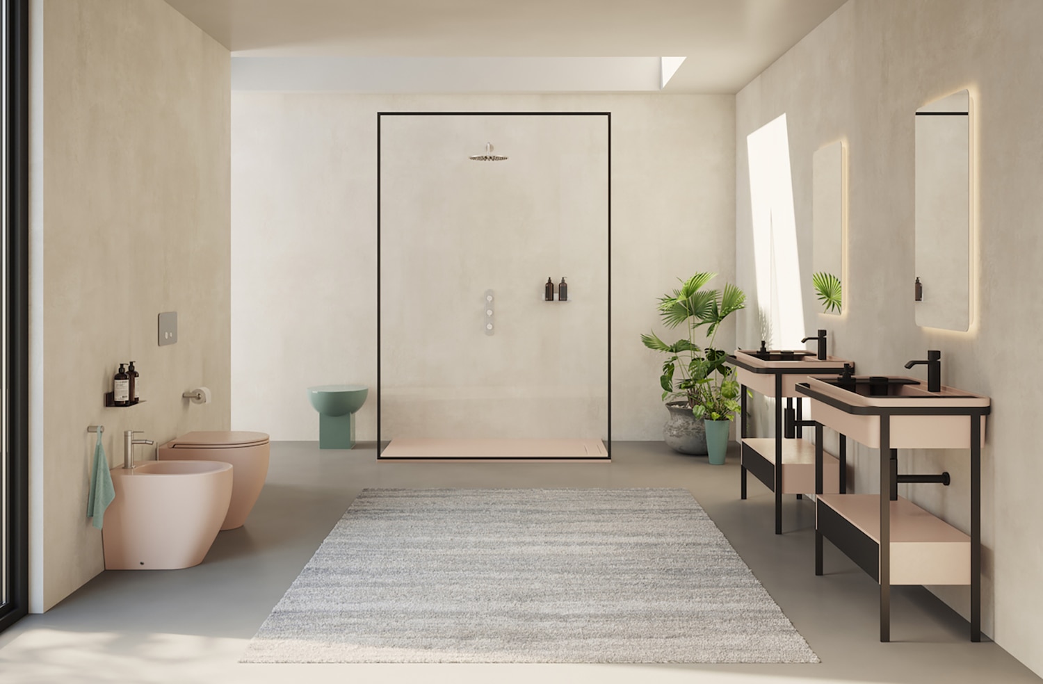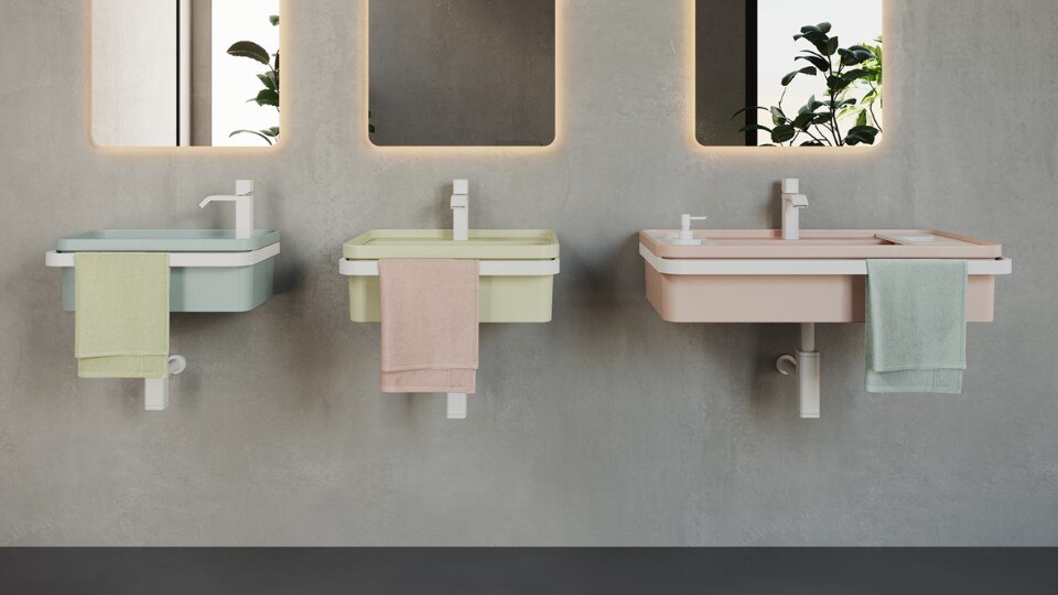 The Nuance range reinterprets the classic pastel shades of green, pink, beige, light blue and grey, while the Essence range offers the essential colours for the modern bathroom: sand, coffee, graphite, magnesium and ice. Glossy white and SDR's ‘best seller’: matt creamy white, an excellence in the company's production, complete the colour range.