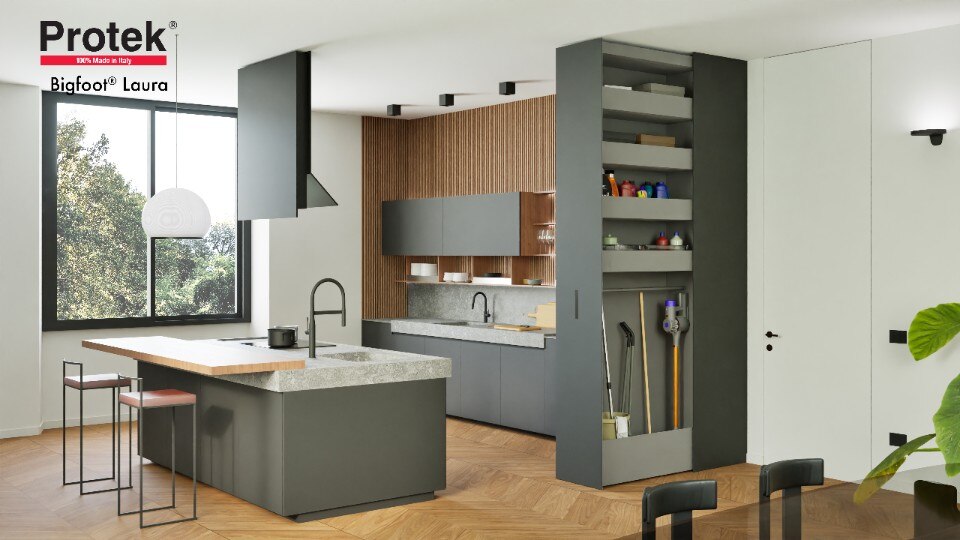 In an era where space and time are the new frontiers of luxury, Bigfoot® by Protek® is the answer for those seeking solutions that combine elegance, functionality, and customization. With its range of accessories, finishes, and configurations, this sliding, concealed module is not just a piece of furniture—it’s a revolution in how we live and organize our home spaces. Bigfoot® gives users the power to optimize space and time without ever compromising on style, offering a versatile luxury experience. A solution that exemplifies Italian design excellence and Protek®’s dedication to the needs of modern living, making every home a functional, elegant, and cutting-edge space.
