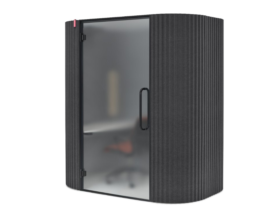 Bay Work Pod stands apart from traditional office booths with its rounded corners and corrugated fabric exterior, which softens visual impact while enhancing sound absorption. This design reduces distractions from surrounding office noise, ensuring the quiet needed for tasks requiring concentration or for confidential calls. Inside the pod, noise pollution is also minimized, creating an acoustically ideal space. Optional frosted glass doors, ceiling finishes, and an occupancy indicator further ensure privacy and focus.