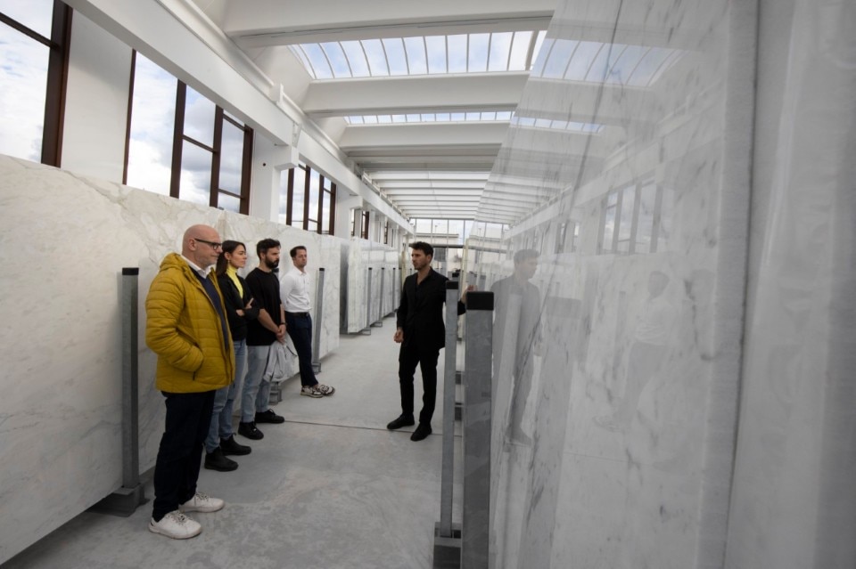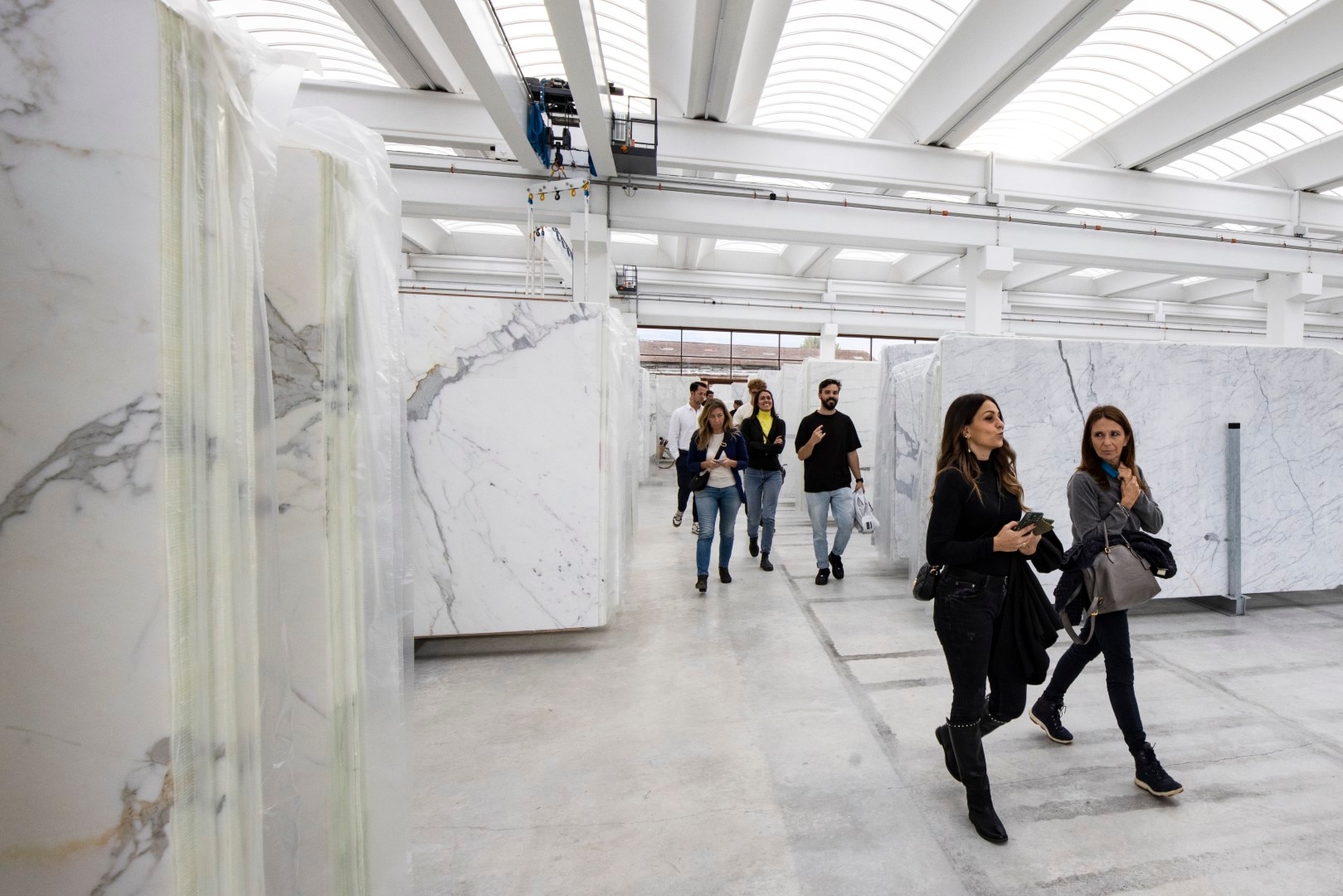 Franchi Umberto Marmi led a group of architects on an experiential journey to discover marble, including showrooms, galleries, and the Crestola quarry.