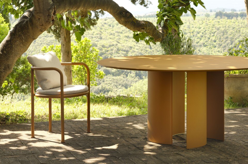 The most characteristic collections include Forest, designed by Robby Cantarutti & Partners, with extruded and die-cast aluminium seating, and the most recent products designed by the creative directors Francesco Meda and David Lopez Quincoces. The latter include Roè, a line of chairs, tables and sofas with clean lines that add a light and modern touch; Naca, a collection of tables where the legs are the key element, going beyond a simple structural element to represent the heart of the entire project, and Samba, aluminium cupboards available in both horizontal and vertical versions, offering elegant storage solutions.
