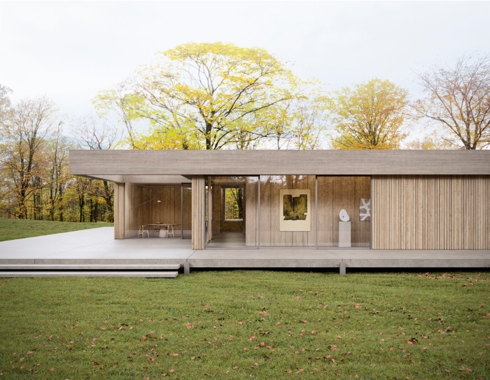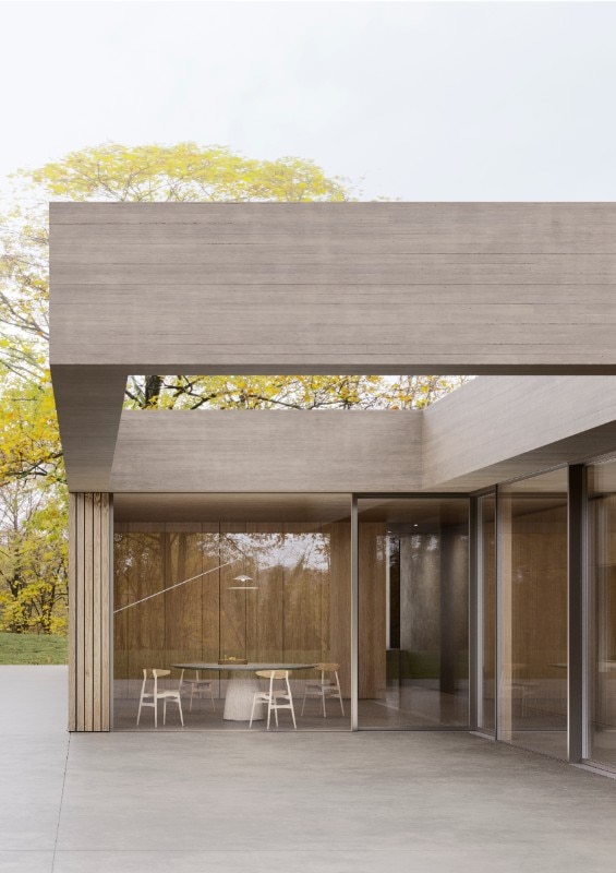 In the countryside, not far from Zurich, a contemporary villa houses a family of five with a deep love of nature. The design intent was to create a true continuum between interior and exterior, integrating living spaces with the surrounding landscape.