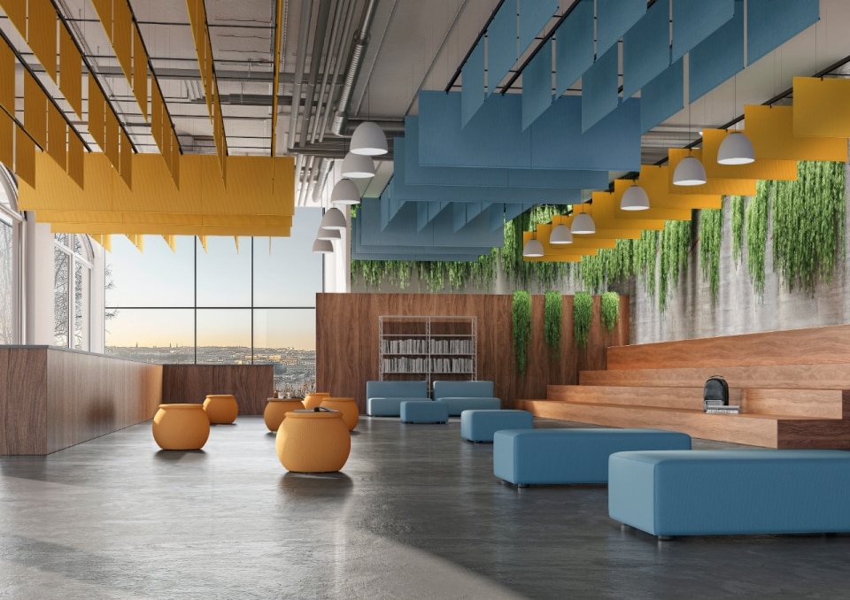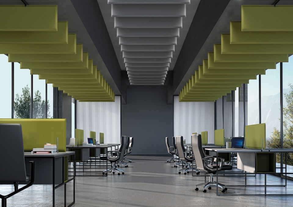 The ceiling becomes a complete functional device, capable of harmonizing acoustic and visual comfort.