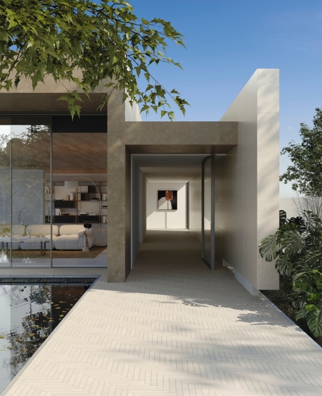 Three finishes complete the proposal, each with its own vocation. Top Lapped reveals the most delicate features, Natural Plus for a soft and authentic result, while Antislip provides safety in wet or outdoor spaces. TerraPura does not propose a one-size-fits-all style, but a material capable of transforming naturally into architecture.