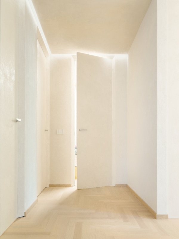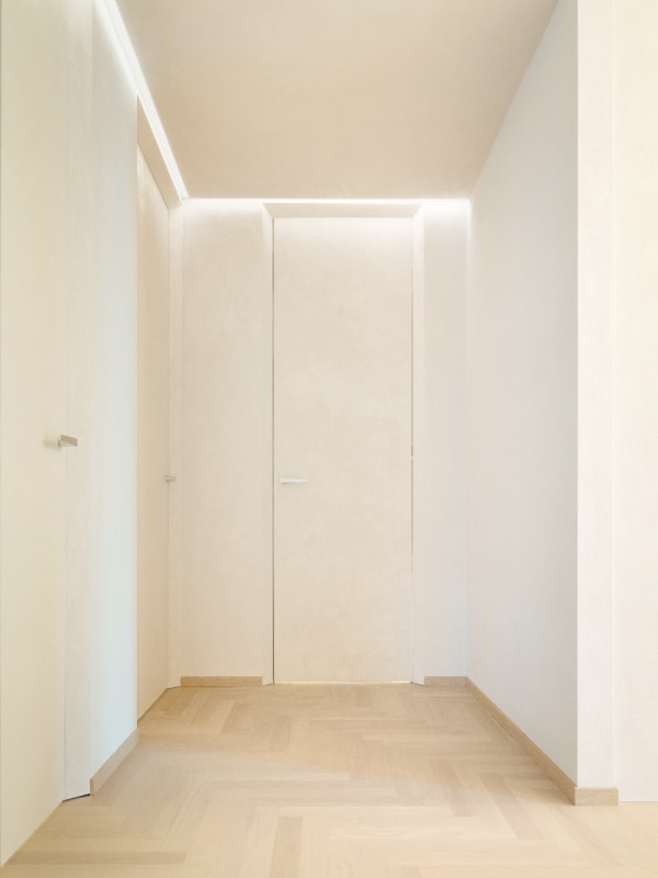 It’s common to think of interior design as dealing only with furniture, finishes, and colors—forgetting that even the smallest details, seemingly less spectacular, can become compositional opportunities. A door, for instance, is not just an opening to pass through but an element that interacts with the surrounding wall. Among its components, the frame is often relegated to a purely functional, invisible role. Yet, when carefully designed, it can become a distinctive feature—a subtle architectural cut that enhances the space with quiet expressiveness.