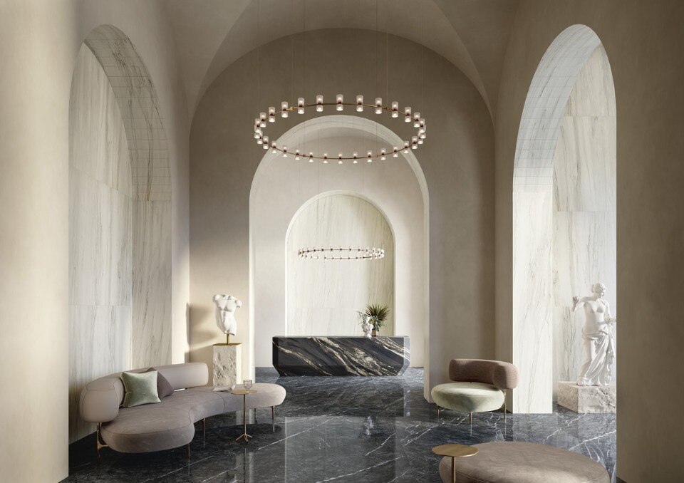 Today it is possible to reinterpret the classical aesthetics of noble residences and the splendour of classical marble monuments according to the values and needs of contemporary times.