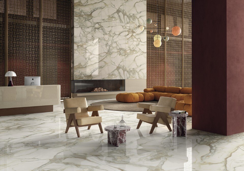 These surfaces stand out for their elegance and luminosity, for the great variety of shades, textures, veining and nuances, adapting to environments that demand luxury and exclusivity: private residences, luxury hotels and B&Bs, shops, boutiques and concept stores, as well as refined restaurants. Thanks to continuous research and technological skill, the new products in the Marmi Maximum range offer visual restitution of unparalleled quality.